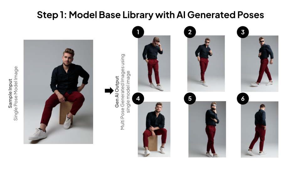 - Generates multiple poses using AI from an existing model library.