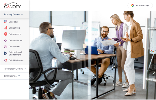 Onix Canopy is a dynamic, interactive platform that demonstrates how intelligent agents, AI automation, and unified intelligence deliver real business value—using real scenarios, synthetic data, and live code.